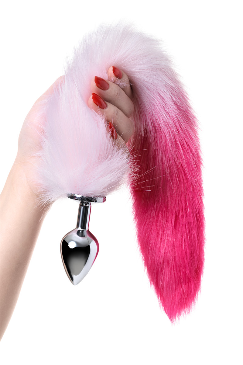 Анальная втулка классическая серебристая с бело-розовым хвостом (M)Артикул: 712028-M