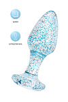 Анальная втулка классической формы выполнена из акрила. Прозрачный материал с голубыми блестками внутри. Ограничительное основание обеспечивает безопасность при использовании, поэтому втулку высоко ценят не только опытные любители анального секса, но и новички.