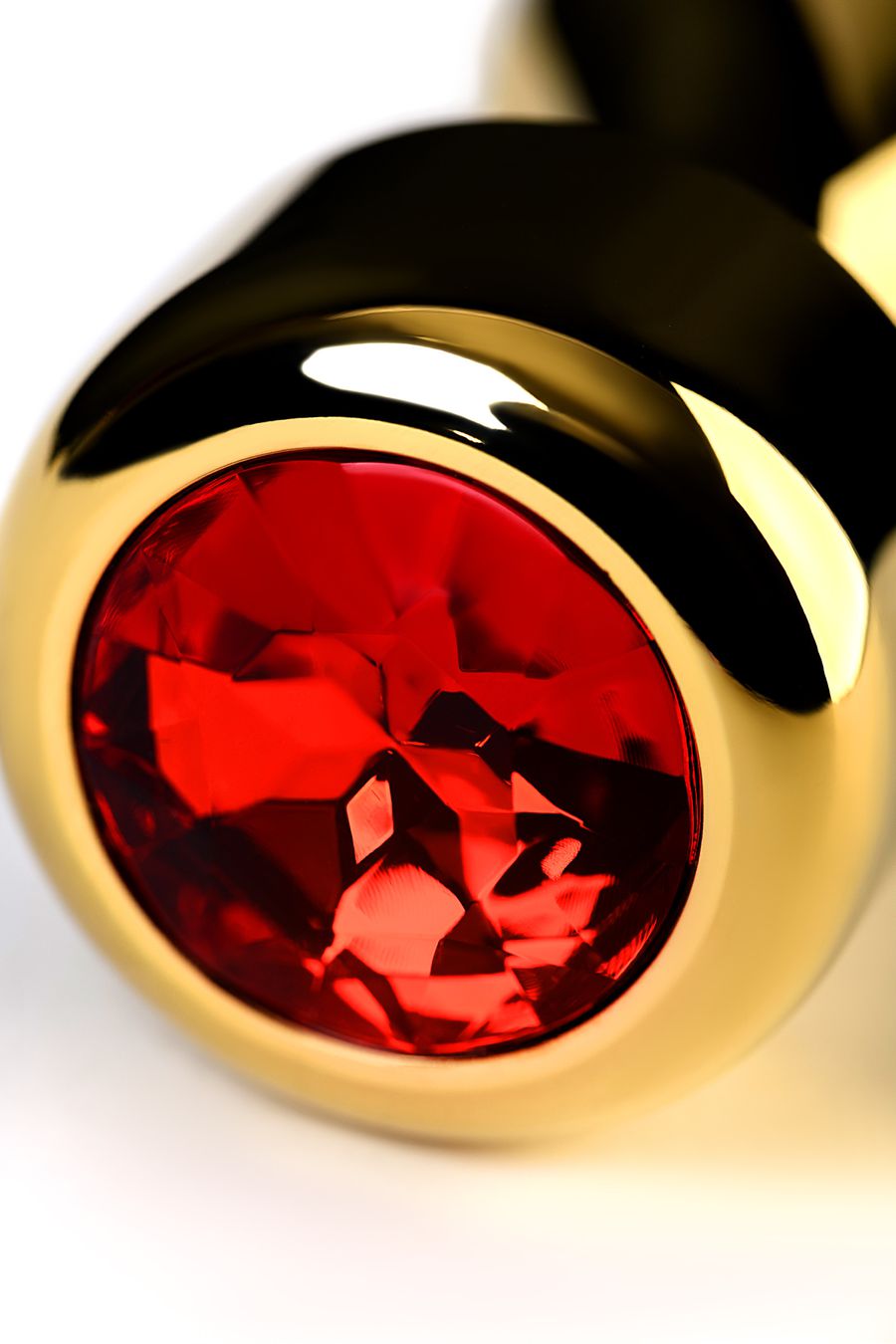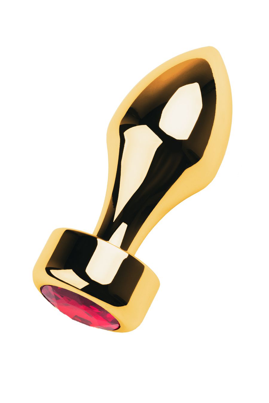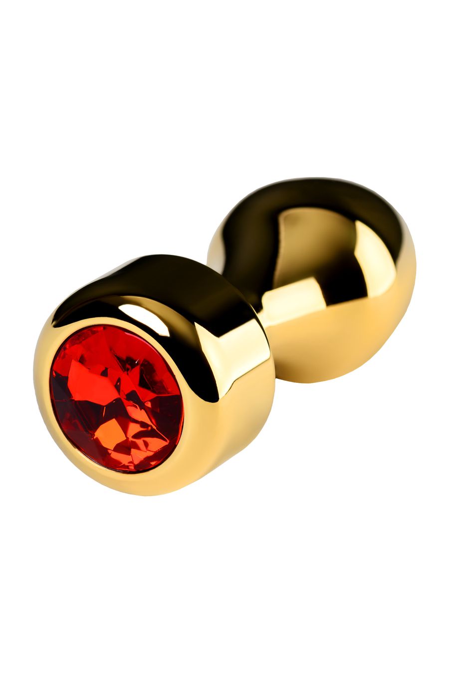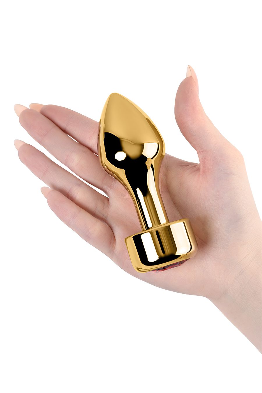 Золотистая втулка-пуля с красным стразом подойдет опытным пользователям. Удобно вводится и удерживается внутри. Широкий ограничитель добавляет уверенности в том, что она не войдет слишком глубоко.