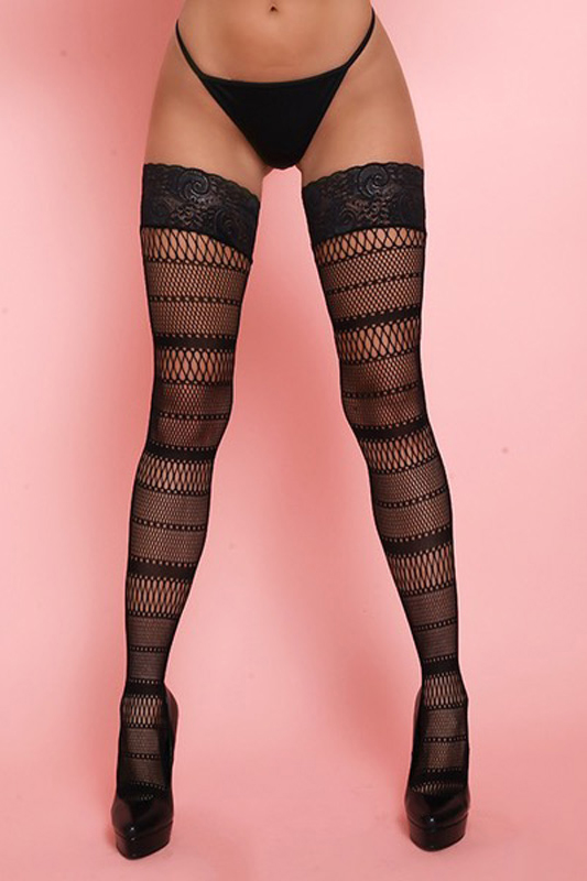 Чулки с в мелкую сетку с оригинальным рисунком, сверху украшены кружевной резинкой на силиконе. Плотность эквивалентна 20 ден. Благодаря использованию большего количества нейлона, белье сохраняет очертания, не деформируется, растягивается и выгодно облегает фигуру. А за счет эластана, даже после сильного растяжения, оно не деформируются, и всегда принимает исходную форму.Изделие не вызывает аллергию, не окрашивает. Уход и стирку следует производить в соответствии с инструкцией завода-изготовителя на упаковке.