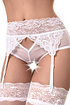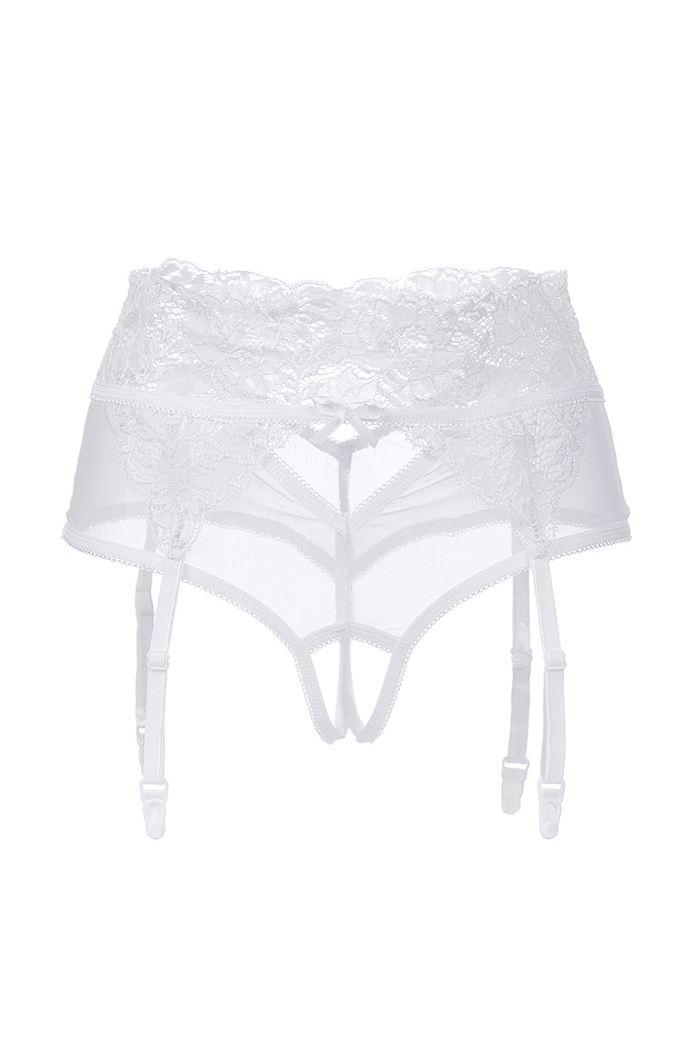 Эротические трусики-пояс Erolanta® Iveta из эластичной сетки со вставками кружева, с декоративными вырезами. Имитация пояса со свободным ажурным краем. Атласный бантик спереди. Высокая посадка. Регулируемые пажи.*Допускается замена кружева на аналогичное. Чулки в комплект не входят.