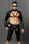 Костюм полицейского Candy Boy Josh, выполненный из ткани wetlook с лаковыми вставками и серебристыми кнопками – выбор смелых и очень уверенных в себе мужчин! Обтягивающий топ-рашгард c воротником-стойкой на кнопках подчеркивает рельеф мужского торса. Wetlook трусы–чапсы (современное прочтение ковбойской одежды) шнуруются по бокам, на бедрах фиксируются регулируемыми кнопками. Открывающийся вид сзади просто незабываем! Настоящие затемненные очки, головной убор с надписью «City Police» дополняют образ.