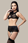 Трусики с высокой талией зрительно удлиняют ноги, подчеркивают сексуальный переход от талии к бедрам. Непрозрачные вставки скрадывают объем в области бедер. Швы, вытачки и регулировка по талии создают силуэтную посадку. Съемные регулируемые пажи, открытая зона копчика и эротический доступ подчеркивают чувственный образ.