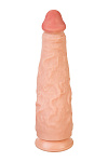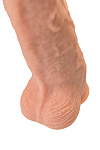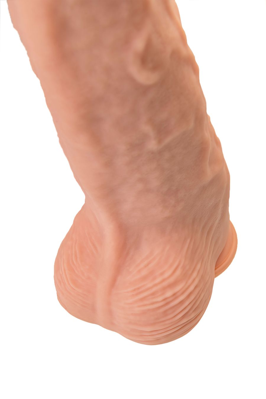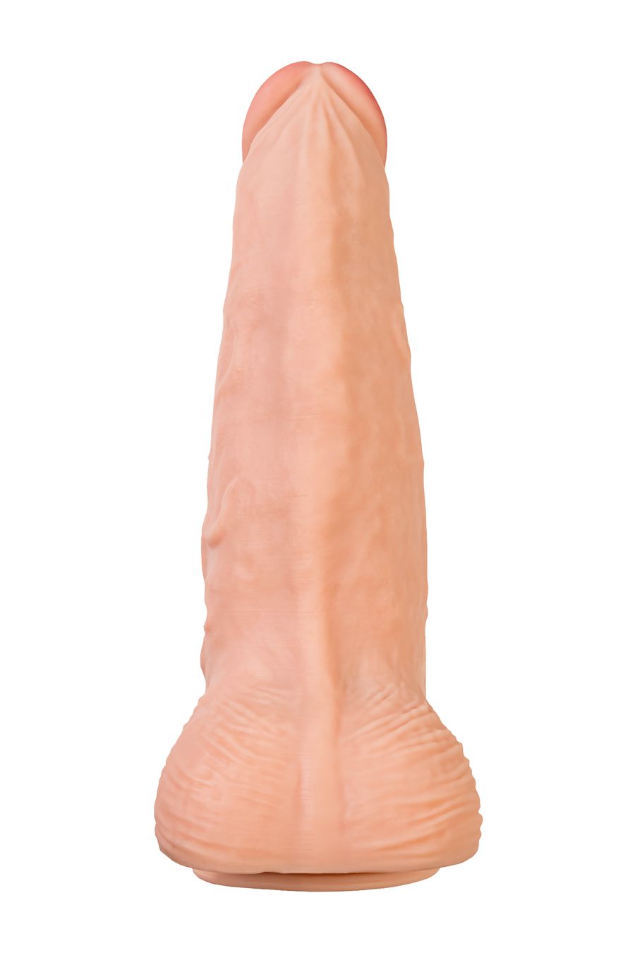 Конусная форма и мощная присоска на основании дают вам возможность экспериментировать с любыми позициями, а уменьшенная головка диаметром 6,7 см добавляет удобства в процессе использования. Рельефный ствол дарит не только физическое, но и эстетическое удовольствие. Рабочая длина фаллоса 33 см, диаметр 11,5 см. Складочки на головке, выступающие венки и морщинистая мошонка дарят тактильное наслаждение.