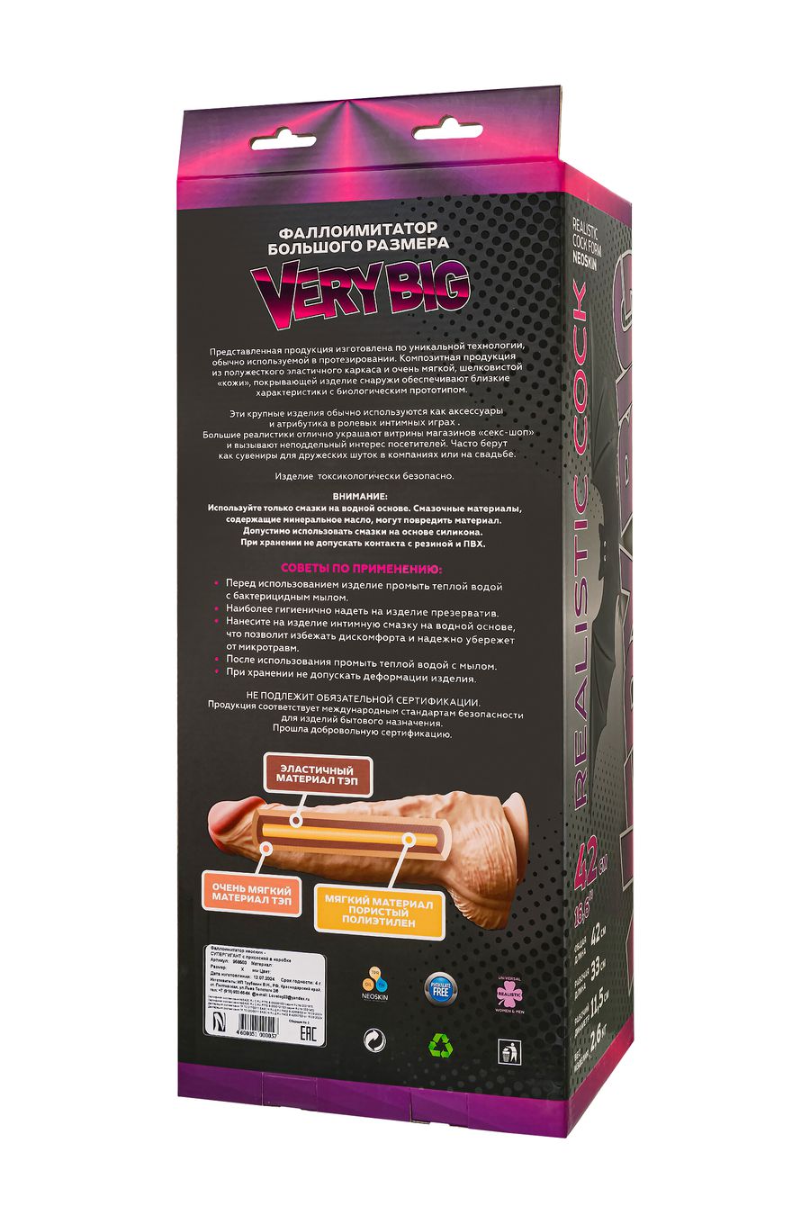 Откройте для себя грани новых ощущений с гигантским фаллоимитатором, созданным для тех, кто не боится экспериментов и готов к экстремальным удовольствиям. Этот мощный аксессуар с общей длиной 42.5 см впечатляет своими внушительными размерами и эргономичным дизайном, что позволяет вам погрузиться в яркие, незабываемые моменты.Фаллоимитатор изготовлен из уникального материала NEOSKIN, разработанного специально для создания максимального комфорта и реалистичных ощущений. Мягкая, шелковистая на ощупь внешняя поверхность нежно взаимодействует с кожей, а прочный внутренний каркас обеспечивает стабильность формы при любых сценариях использования.