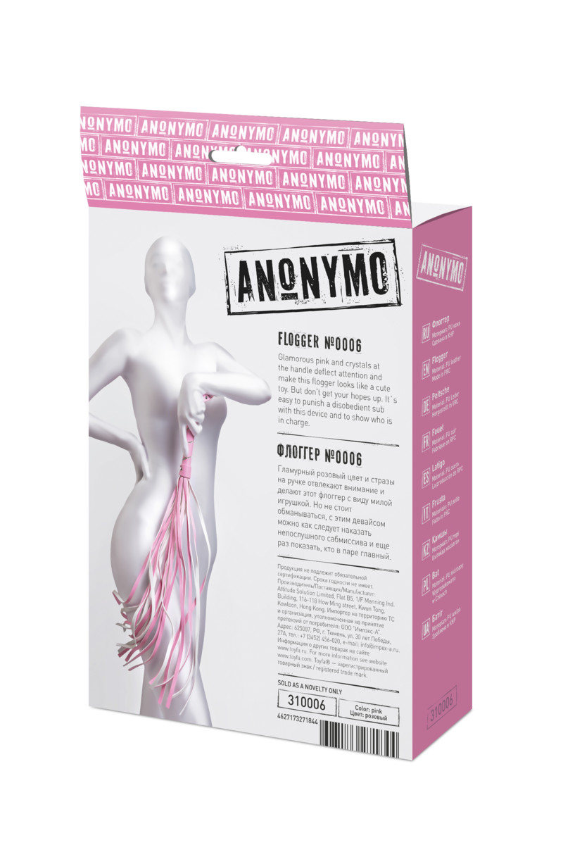 Флоггер Anonymo #0006 розовый, 64 см.Артикул: 310006