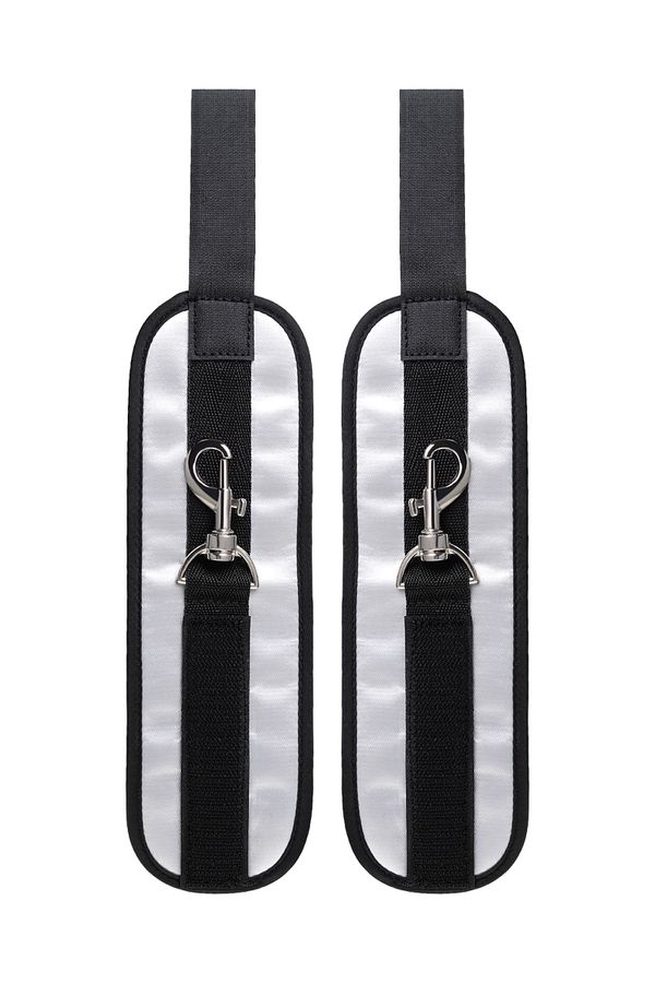 Оставьте наручники и кровать в прошлом веке, пора играть по-взрослому. Фиксаторы для рук на дверь для смелых и терпеливых. Больше позиций для получения удовольствия без силовых затрат!Пластиковые цилиндры фиксируются за дверью, наручники крепятся на запястьях с помощью застежки велкро. Размер легко регулируется ремешками и подойдет для запястий любого размера. Серебряный цвет с черными ремешками смотрится элегантно. Внутренняя часть наручников мягкая и не доставляет дискомфорта во время использования.