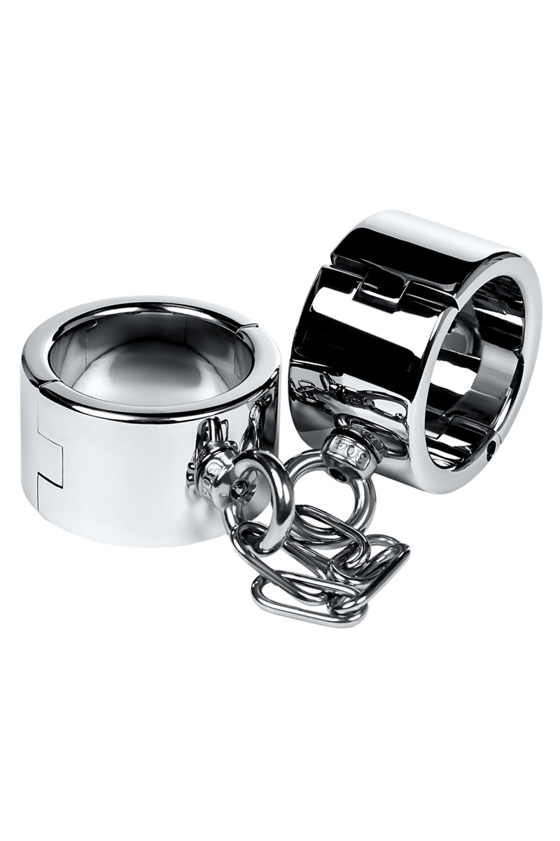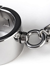 Тяжелые наручники из нержавеющей стали — серьезное ограничение свободы. В таких оковах весом почти в килограмм и шириной 4 см нижний точно почувствует, кто тут Хозяин. Внутренний диаметр этого девайса — 53 мм.