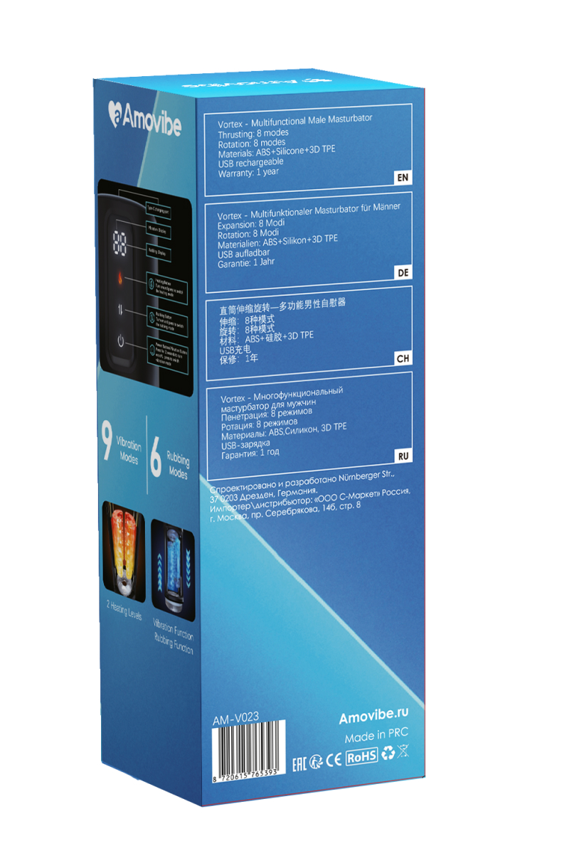 Рукав изготовлен из эластичного и мягкого 3D ТПЕ материала (менее пористый чем обычный ТПЕ). Он не содержит фталатов и обеспечивет приятные тактильные ощущения. Использовать мастурбатор рекомендуется только с лубрикантом на водной основе. Включить игрушку можно трехсекундным нажатием на кнопку включения.