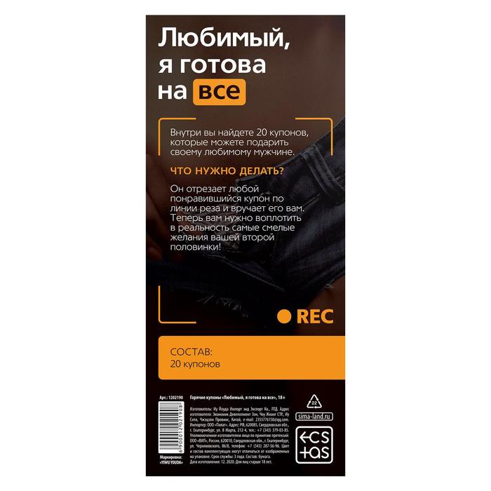 Горячие купоны для двоих: Любимый, я готова на всеАртикул: 1202190
