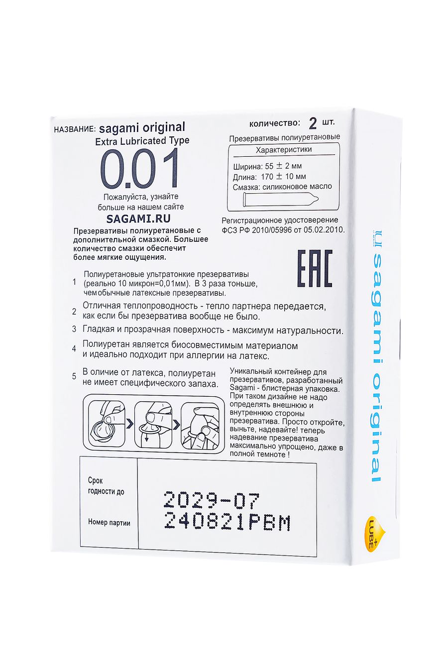 Презервативы полиуретановые Sagami Original 001 EXTRA LUB (2шт.)Артикул: 763