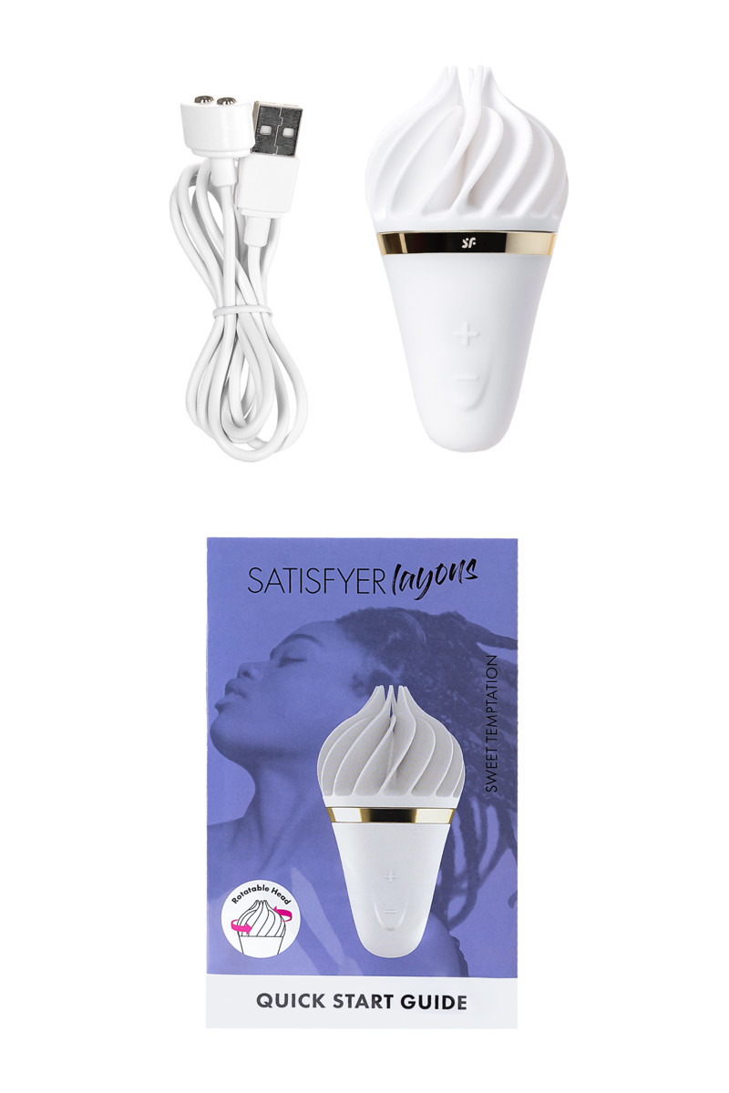 Красочный, лакомый и смелый — спиннатор Satisfyer layons Sweet Treat утоляет жажду наслаждения словно холодное мороженое в жаркий летний день. Очаровательный дизайн в виде вафельного рожка и большая мощность вращения делают этот вибратор украшением даже самой потрясающей коллекции игрушек.Закругленный кончик Sweet Treat состоит из нежных заостряющихся лепестков, которые ласкают клитор так, будто хотят, чтобы вы растаяли в неге блаженства. Обольстительные программы из 4-х ритмов и 3-х скоростей вращения в каждую сторону провоцируют на громкие стоны. А полностью водонепроницаемая поверхность призывает устроить релакс-программу в бодрящем душе или расслабляющей ванне.