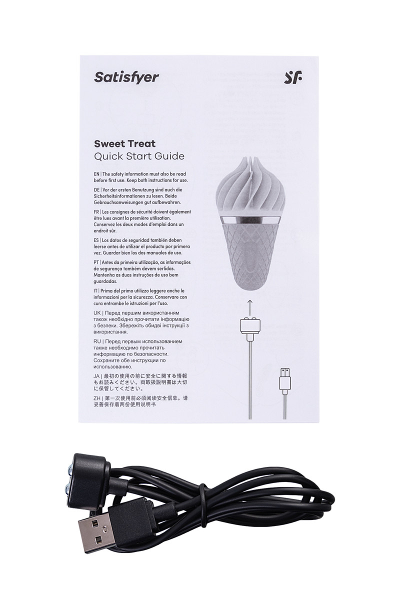 Красочный, лакомый и смелый — спиннатор Satisfyer layons Sweet Treat утоляет жажду наслаждения словно холодное мороженое в жаркий летний день. Очаровательный дизайн в виде вафельного рожка и большая мощность вращения делают этот вибратор украшением даже самой потрясающей коллекции игрушек.Закругленный кончик Sweet Treat состоит из нежных заостряющихся лепестков, которые ласкают клитор так, будто хотят, чтобы вы растаяли в неге блаженства. Обольстительные программы из 4-х ритмов и 3-х скоростей вращения в каждую сторону провоцируют на громкие стоны. А полностью водонепроницаемая поверхность призывает устроить релакс-программу в бодрящем душе или расслабляющей ванне.