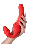 Этот безремневой страпон из бархатистого силикона доставит удовольствие обоим партнерам. Три мотора расположены в основных для наслаждения точках: в основном вибраторе, маленьком стимуляторе и ребристом выступе, который ложится на клитор. Благодаря эргономичной форме, его легко удерживать вагинальными мышцами. Гибкое основание маленького стимулятора дает возможность вводить его как вагинально, так и анально.
