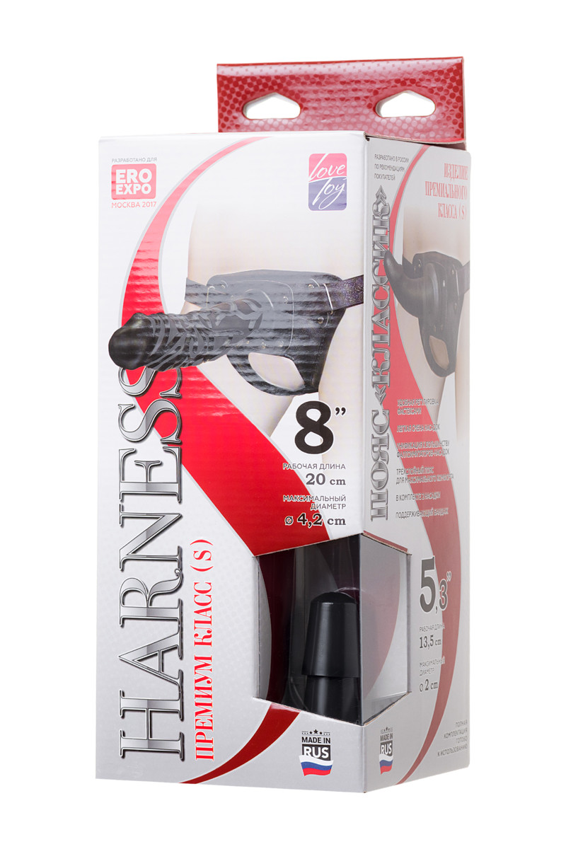 Страпон на креплении LoveToy с поясом Harness, с 2 насадками, чёрный, 20 см.Артикул: 300503