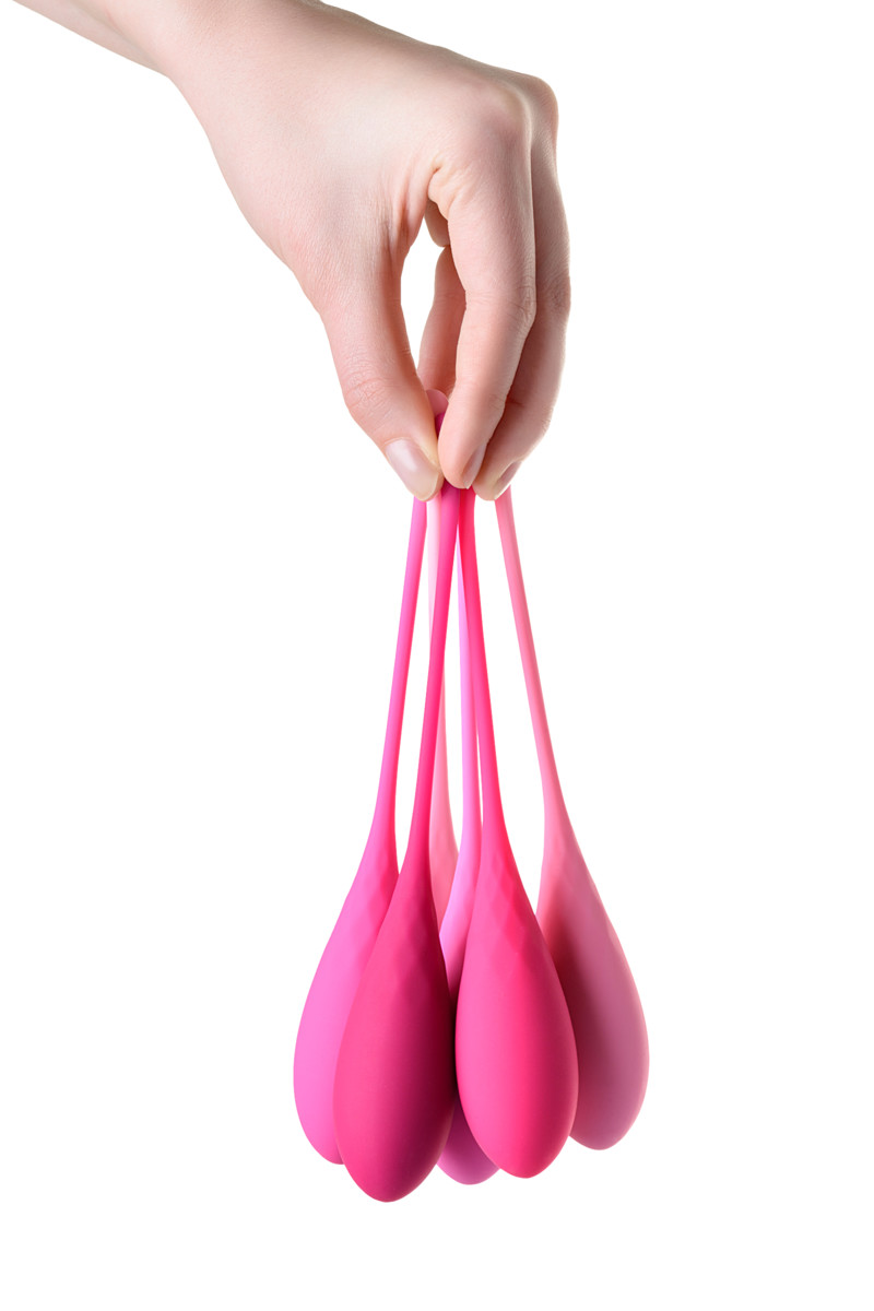 Этот набор может стать «идеальным тренером» твоей красоты и здоровья, ведь он подойдёт каждой женщине. Целых 6 вариантов веса – для постепенного увеличения нагрузки, каплевидная форма и мягкий «хвостик» – для удобного размещения и извлечения тренажера, и все это в удобной и безопасной коробке. Но идеальный продукт для женщин должен быть еще и красивым. Поэтому, стильный дизайн, мягкие оттенки розового и нежность силикона сделают заботу о твоем интимном здоровье элегантной и приятной.