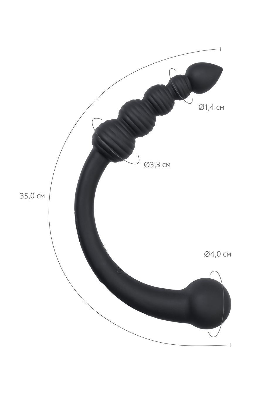 Анальная цепочка из 4 шариков с ребристой поверхностью (диаметр от 2,3 до 3,5 см) — создаёт волнующую стимуляцию чувствительных зон, постепенно увеличивая интенсивность ощущений. Заканчивается каплевидным наконечником для более легкого введения.