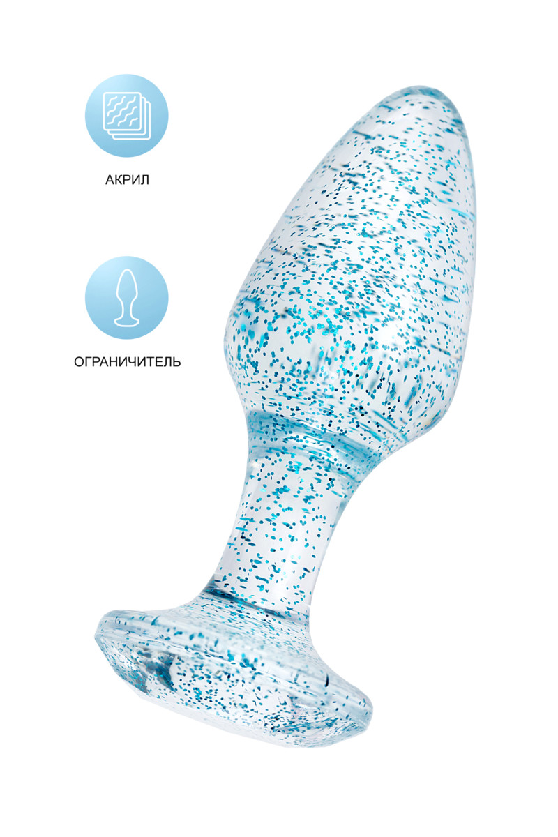 Анальная втулка классической формы выполнена из акрила. Прозрачный материал с голубыми блестками внутри. Ограничительное основание обеспечивает безопасность при использовании, поэтому втулку высоко ценят не только опытные любители анального секса, но и новички.