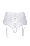 Эротические трусики-пояс Erolanta® Iveta из эластичной сетки со вставками кружева, с декоративными вырезами. Имитация пояса со свободным ажурным краем. Атласный бантик спереди. Высокая посадка. Регулируемые пажи.*Допускается замена кружева на аналогичное. Чулки в комплект не входят.