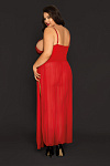 Длинная комбинация и Т-стринги Candy Girl® Tabitha создают wow-эффект. Кружевной лиф визуально добавляет объем и поддерживает грудь. Вставки из трикотажной ткани и лаковой кожи плотно обхватывают талию, создавая точеный силуэт, а шнуровка и регулируемые бретели помогают достичь комфортной посадки. Четыре высоких продольных разреза струящейся юбки из полупрозрачной сетки зрительно удлиняют ноги и соблазнительно приоткрывают колени, бедра и ягодицы. Комбинация для дивы с шикарными формами идеальна для танца, романтического вечера или в качестве домашнего наряда.