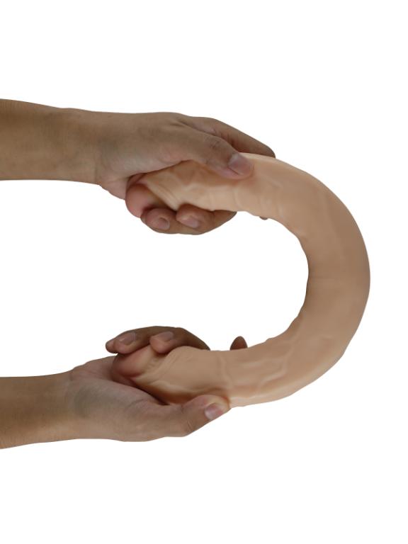 Двусторонний фаллоимитатор из прочного, но эластичного материала делает ощущения максимально реалистичными. Дилдо имеет две мягкие головки и твердое покрытое набухшими венами тело, которое отлично сгибается. Для комфортности введения и получения наиболее приятных ощущений используйте лубрикант на водной основе. Игрушку можно помыть в теплой воде с мылом или воспользоваться специализированными чистящими средствами. Перед хранением игрушку необходимо хорошо просушить. Хранить отдельно от других изделий и не допускать попадание прямых солнечных лучей. Не содержит фталатов.Материал:ПВХ