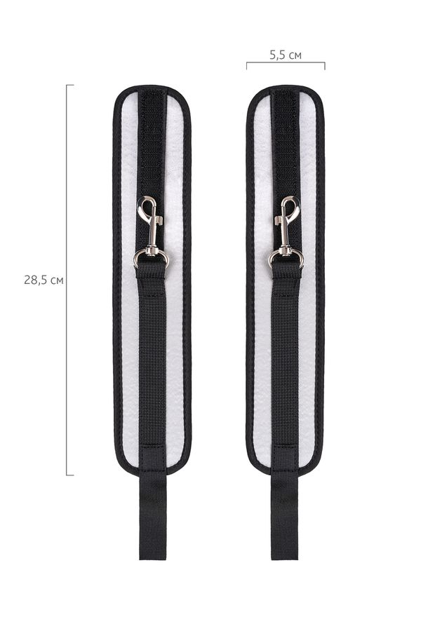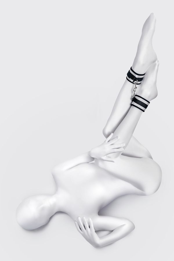 Застежка велкро позволяет зафиксировать ноги любого размера. Между собой поножи скрепляются карабинами, практически не оставляя свободы действий. Никакого послабления, только полное подчинение своему Доминанту. Используйте дополнительно цепочку для расширенных возможностей фиксации положения ног.
