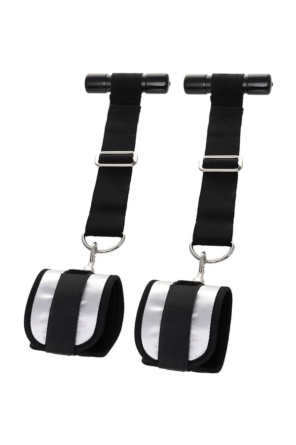Оставьте наручники и кровать в прошлом веке, пора играть по-взрослому. Фиксаторы для рук на дверь для смелых и терпеливых. Больше позиций для получения удовольствия без силовых затрат!Пластиковые цилиндры фиксируются за дверью, наручники крепятся на запястьях с помощью застежки велкро. Размер легко регулируется ремешками и подойдет для запястий любого размера. Серебряный цвет с черными ремешками смотрится элегантно. Внутренняя часть наручников мягкая и не доставляет дискомфорта во время использования.