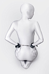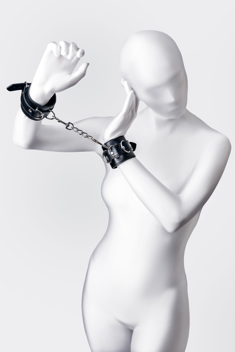 Черные наручники с металлической отделкой – брутальные ограничители свободы. К тому же, они на самом деле весьма жестко обхватывают руки и надежно соединяют их между собой цепочкой на карабинах.Три кольца для крепления позволяют дополнить наручники аксессуарами и использовать различные варианты фиксации. Длина наручников позволяет использовать их практически на любой размер рук. Отрегулировать размер и силу обхвата легко с помощью ремешка и металлической пряжки.