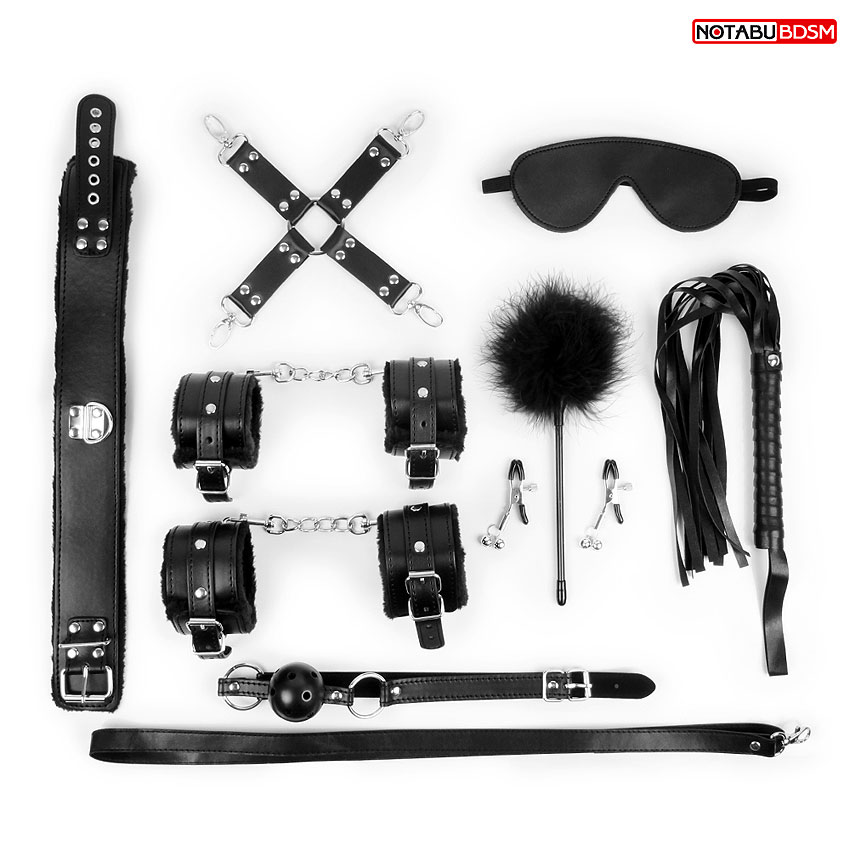 Великолепный набор аксессуаров для любителей БДСМ. В комплект входят кляп, наручники, оковы, ошейник, поводок, верёвка, маска, плеть.Кляп состоит из пластмассового шарика с отверстиями для дыхания и ремней с возможностью регулировки размера.