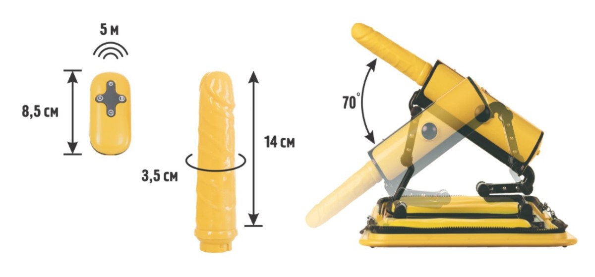 Секс-машина FckBag. В яркой сумке скрывается мощный инструмент любви – секс-машина FckBag. Самые яркие ощущения вам подарят: Возможность дистанционно управлять машиной на расстоянии до 5 метров с помощью пульта. В комплекте адаптер vac-u-lock. Функция нагрева фаллоимитатора до 43 °С. 190 фрикций в минуту в 3-х скоростных режимах. Максимальное удовольствие одной кнопкой пульта (кнопка H включает самые мощные режимы). Устойчивая конструкция машины, которую можно расположить на любой поверхности (в т.ч. на мягкой). Фаллоиммитатор длина:14 см . диаметр:3,5 смКомпактная и легкая, несложная в сборке и удобная в хранении – F*ckBag настоящая находка как для одиноких людей, так и для пар. Не забывайте использовать сумку по назначению, для этого предварительно извлеките устройство из сумки.