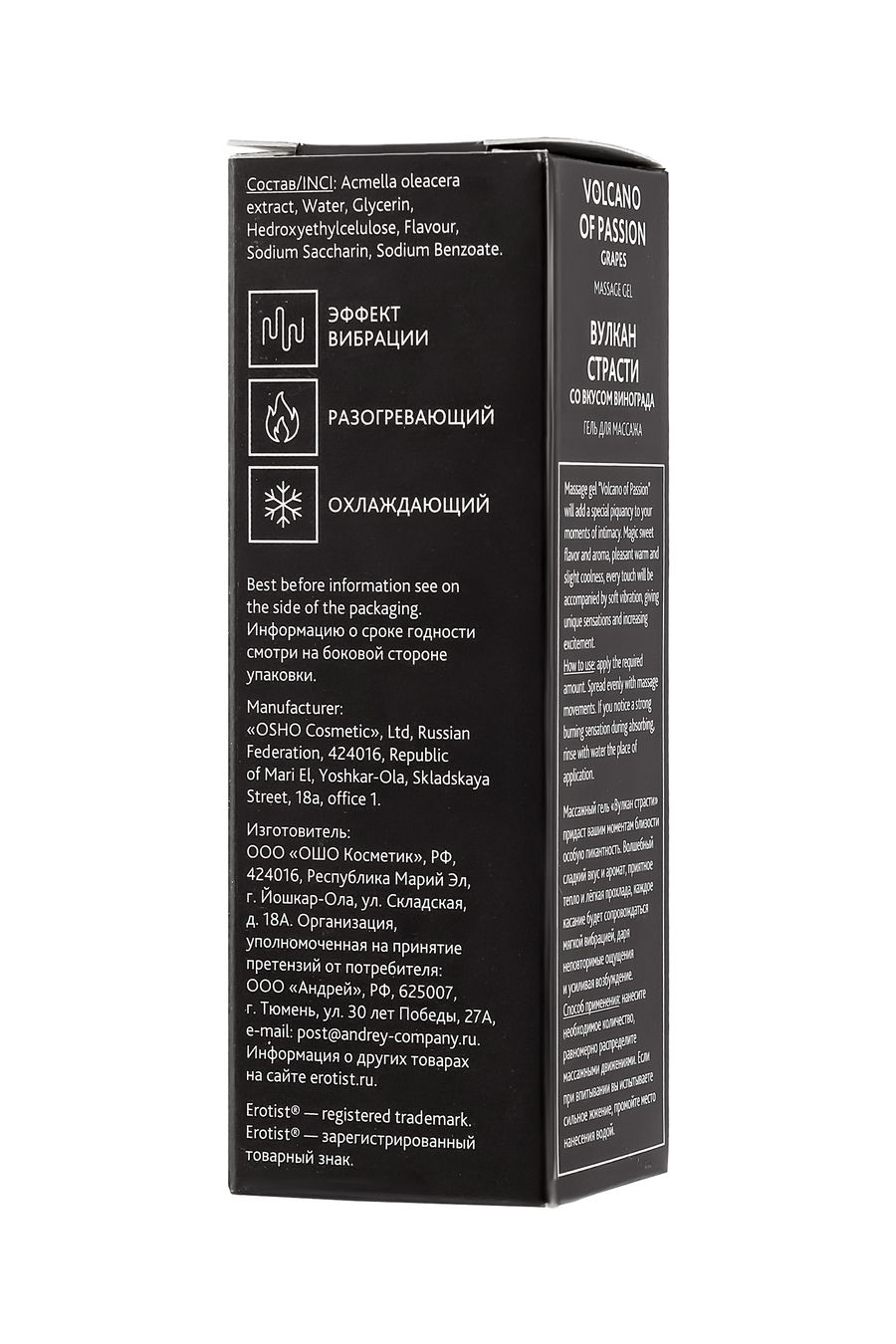 «Вулкан страсти» придаст вашим моментам близости особую пикантность. Волшебный сладкий вкус и аромат, приятное тепло и лёгкая прохлада, каждое касание будет сопровождаться мягкой вибрацией, даря неповторимые ощущения и усиливая возбуждение. Нанесите немного жидкого геля на интимные зоны, и через несколько секунд вы почувствуете тепло, затем в течение 2-3 минут легкую вибрацию и легкий холодок. Длительность эффекта зависит от особенностей вашего организма.