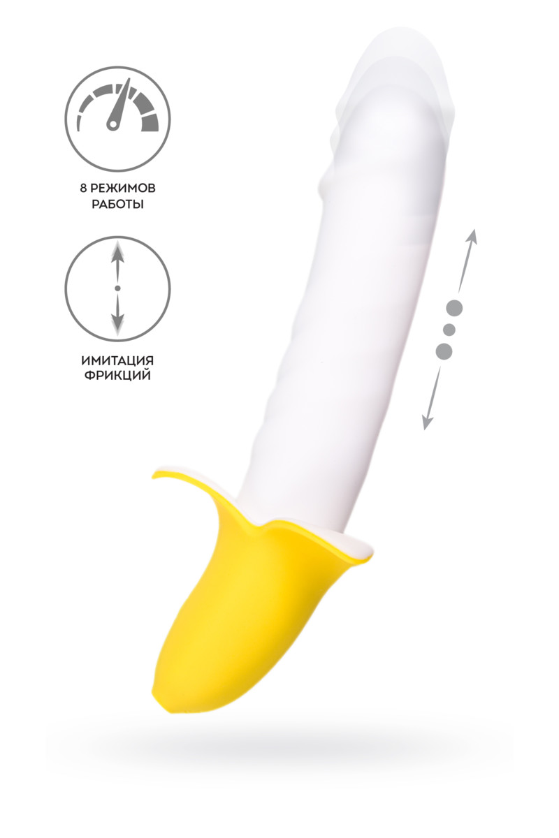 B-NANA - массажер с имитацией фрикций. Яркий и "вкусный" дизайн массажера не оставит никого равнодушным! Имитация головки и ребристая поверхность ствола позволит испытать ощущения на максимуме. Главная фишка - это возвратно-поступательные движения массажера, которые имитируют фрикции.B-NANA работает в 8 различных режимах. Мощные оргазмы гарантированы. Комфортное управление одной кнопкой. Изготовлен из высококачественного бархатистого силикона.